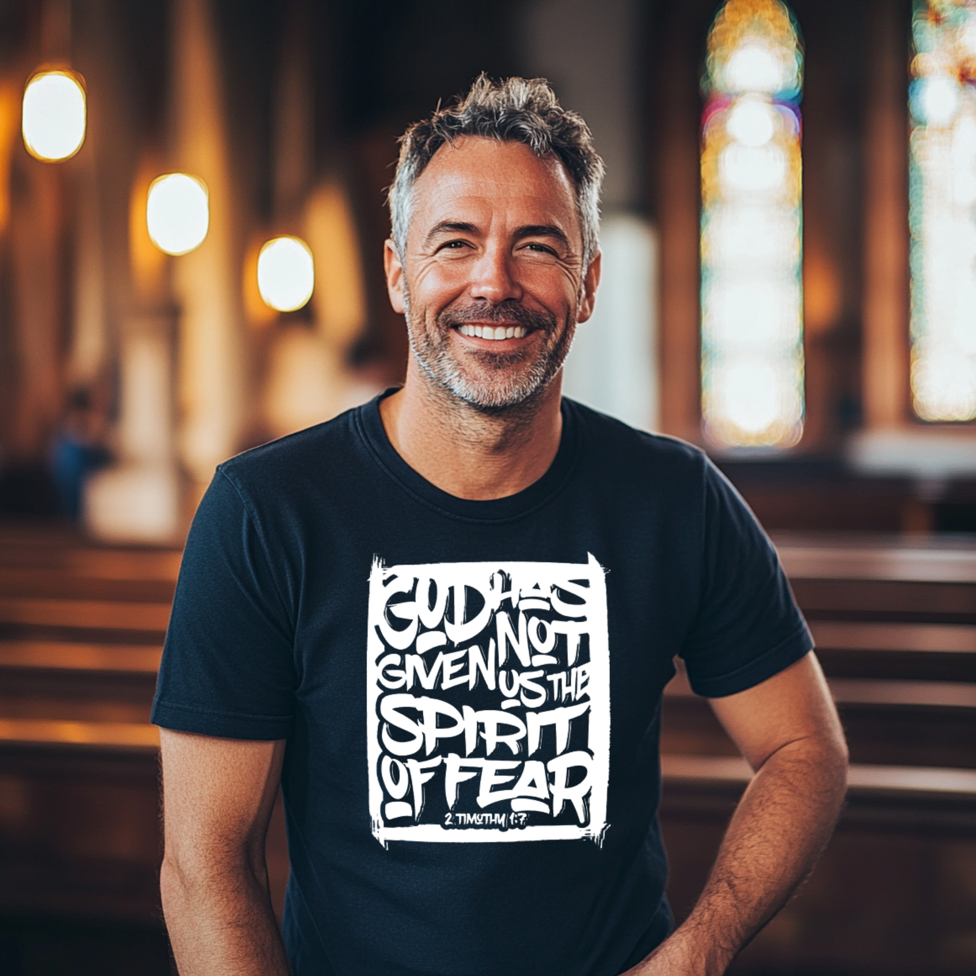 Are you searching for strength and courage? With an inspiring message reminding us that "God has not given us the spirit of fear," this shirt will give you the confidence to face any challenge. Let faith guide you and fear will disappear!