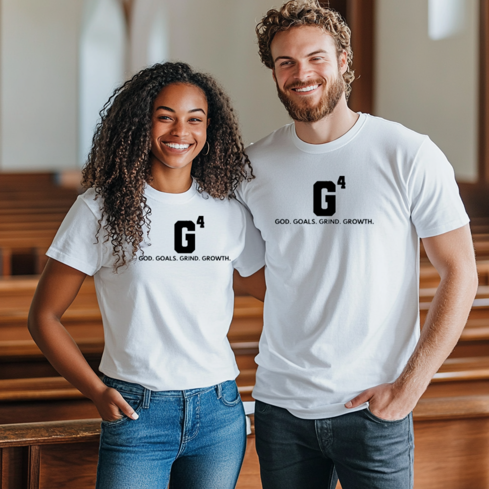 Unleash your faith and reach your goals with our G4 Christian t-shirt. Made with high-quality materials, this shirt will inspire you to grind towards personal and spiritual growth. Let your faith shine while looking stylish and spreading positivity through our god-inspired design.