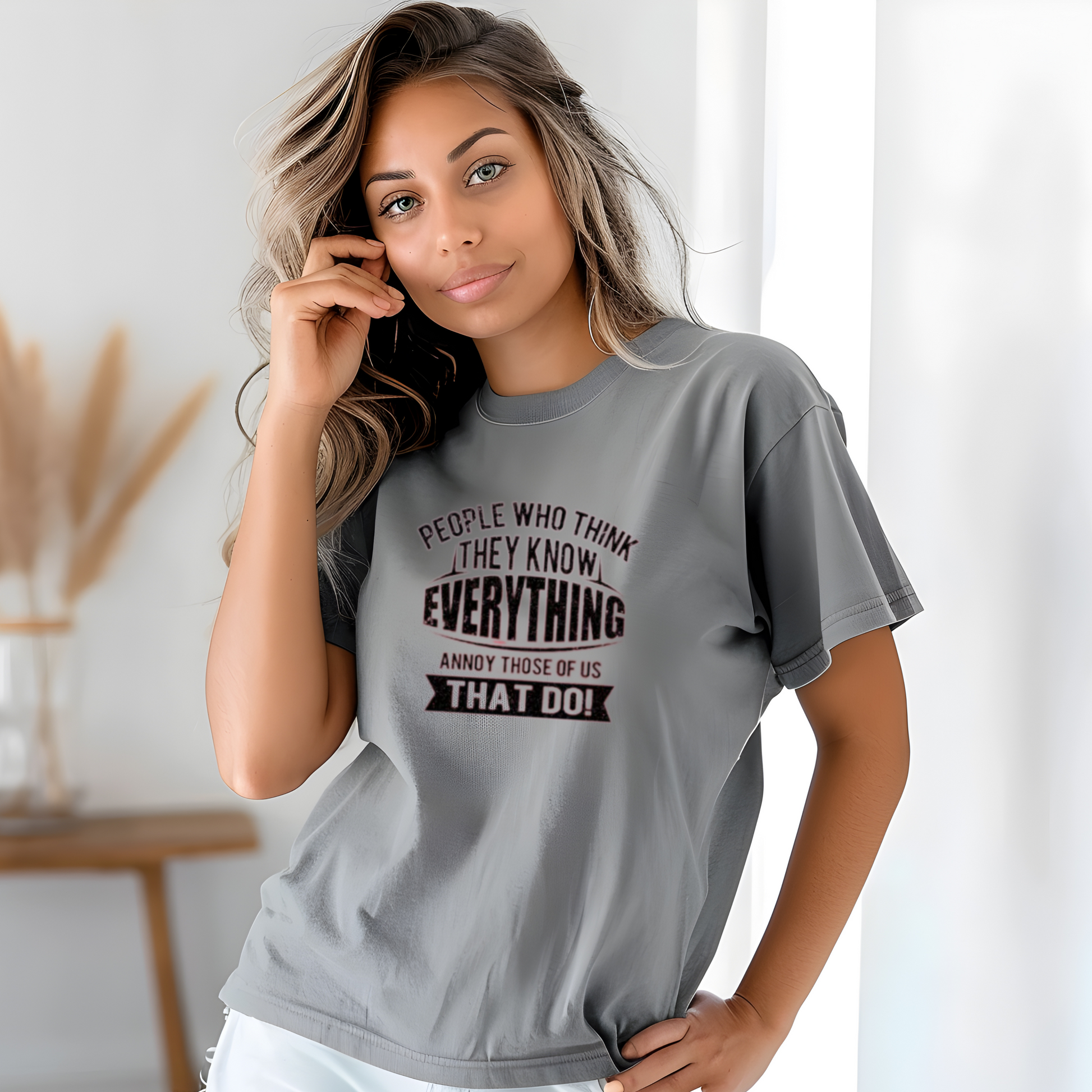 Be proud of your intelligence with our PEOPLE WHO THINK THEY KNOW EVERYTHING ANNOY THOSE OF US THAT DO(UNISEX) shirt! Show others that you have the knowledge and confidence to back it up. Don't let the naysayers get you down, embrace your intelligence and wear it proudly.